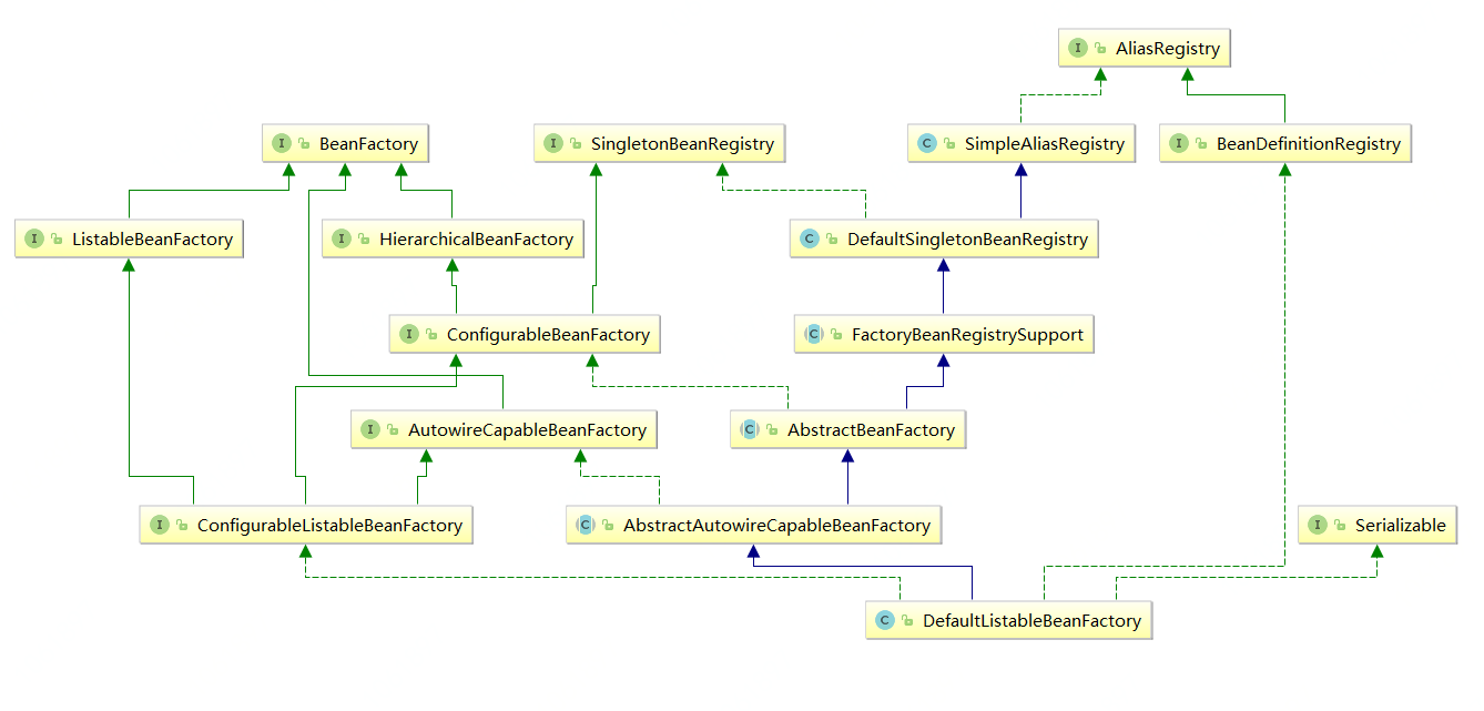 先看一下最重要的BeanFactory实现类 DefaultListableBeanFactory的继承关系