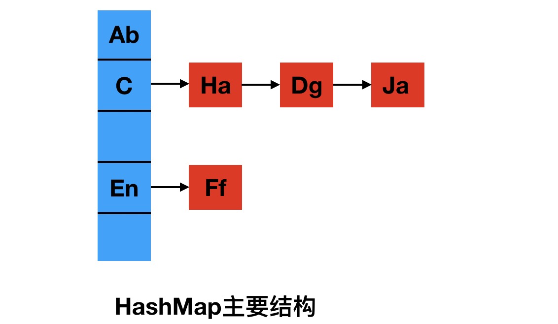 我们都知道Java中的HashMap是使用数组,结合链表来实现的,其结构如下: